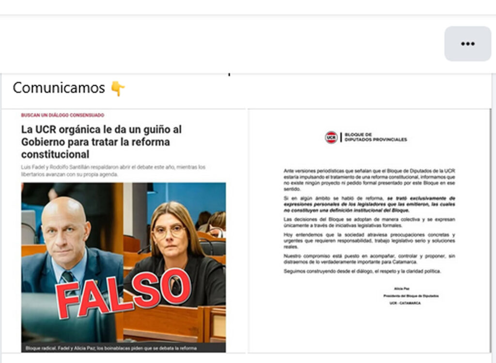 El Bloque de Diputados Provinciales de la Unión Cívica Radical (UCR) emitió un comunicado oficial para desmentir versiones periodísticas que lo ubicaban como promotor del tratamiento de una reforma constitucional en Catamarca. La aclaración, firmada por la presidenta del bloque, Alicia Paz, busca poner fin a las especulaciones y fijar una postura institucional.
