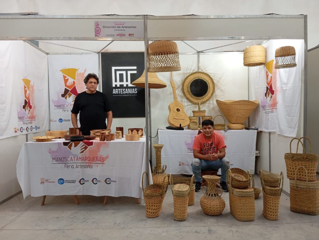 El espacio institucional de la provincia cuenta con la presencia del maestro artesano en fibra vegetal, Solano Condorí, quien fue reconocido con el Premio a la Trayectoria Artesanal en la edición 2024 de la Fiesta Nacional e Internacional del Poncho.