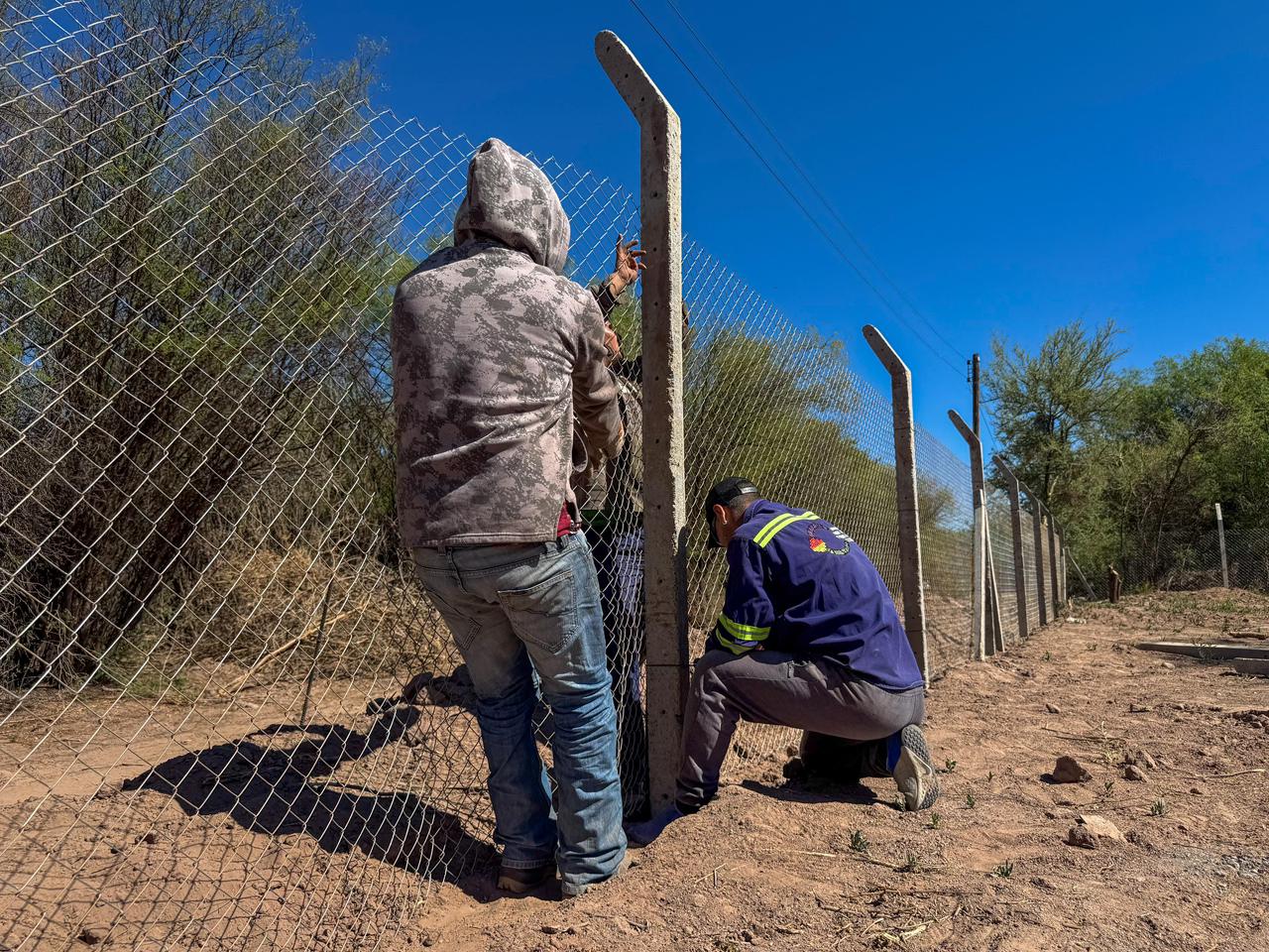 El intendente Ernesto Andrada, junto al secretario de Obras y Servicios Públicos, Dardo Morales, y el responsable de Riego, Ricardo Morales, supervisaron los trabajos finales en el cerramiento perimetral de la nueva perforación de agua potable en el Barrio Los Guaytimas, una obra muy esperada que beneficiará a más de 200 familias del sector y de zonas aledañas como Los Palacios, Ruta 3, Los Valdés y Los Rodríguez.