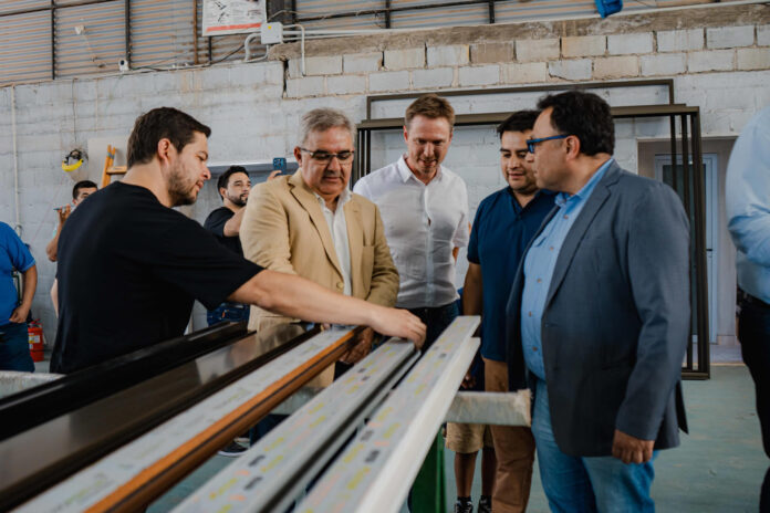 Las autoridades fueron recibidas en la planta por miembros de la familia Carrazco, los propietarios de la fábrica, quienes explicaron los procesos de fabricación de aberturas de aluminio que se proveen a gran parte de la Provincia, tanto para viviendas familiares como para obras más complejas.