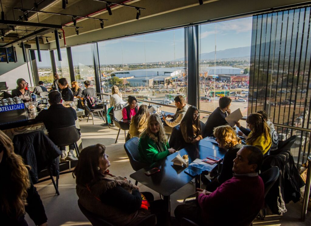 Merendar o cenar en el piso superior del Estadio Bicentenario y con una vista inmejorable: una panorámica del Predio Ferial y alrededores, con el cordón montañoso del Ambato como telón de fondo.
