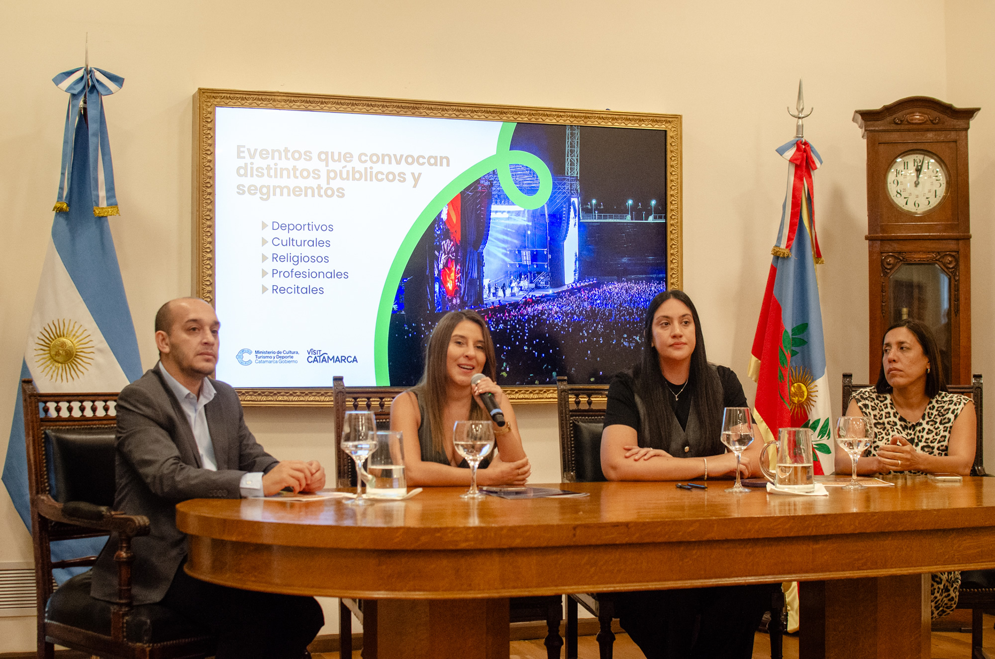 La presentación estuvo presidida por la ministra de Cultura, Turismo y Deporte, Daiana Roldán, junto a la secretaria de Gestión Turística, Evangelina Quarín, el secretario de Deportes, Guillermo Perna y la secretaria de Gestión Cultural Laura Maubecin y se realizó ante una importante cantidad de prestadores de servicios del sector privado entre los que se encontraban organizadores de eventos, representantes del sector hotelero, agentes de viajes, servicios de gastronomía y de transporte.