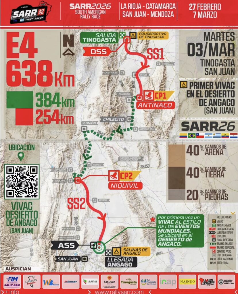 Finalmente, el martes 3 de marzo, se correrá la Etapa 4, donde la competencia partirá desde Tinogasta para salir de la provincia de Catamarca y finalizar en San Juan, teniendo como punto de referencia el Polideportivo de Tinogasta, que albergará las etapas mencionadas anteriormente.