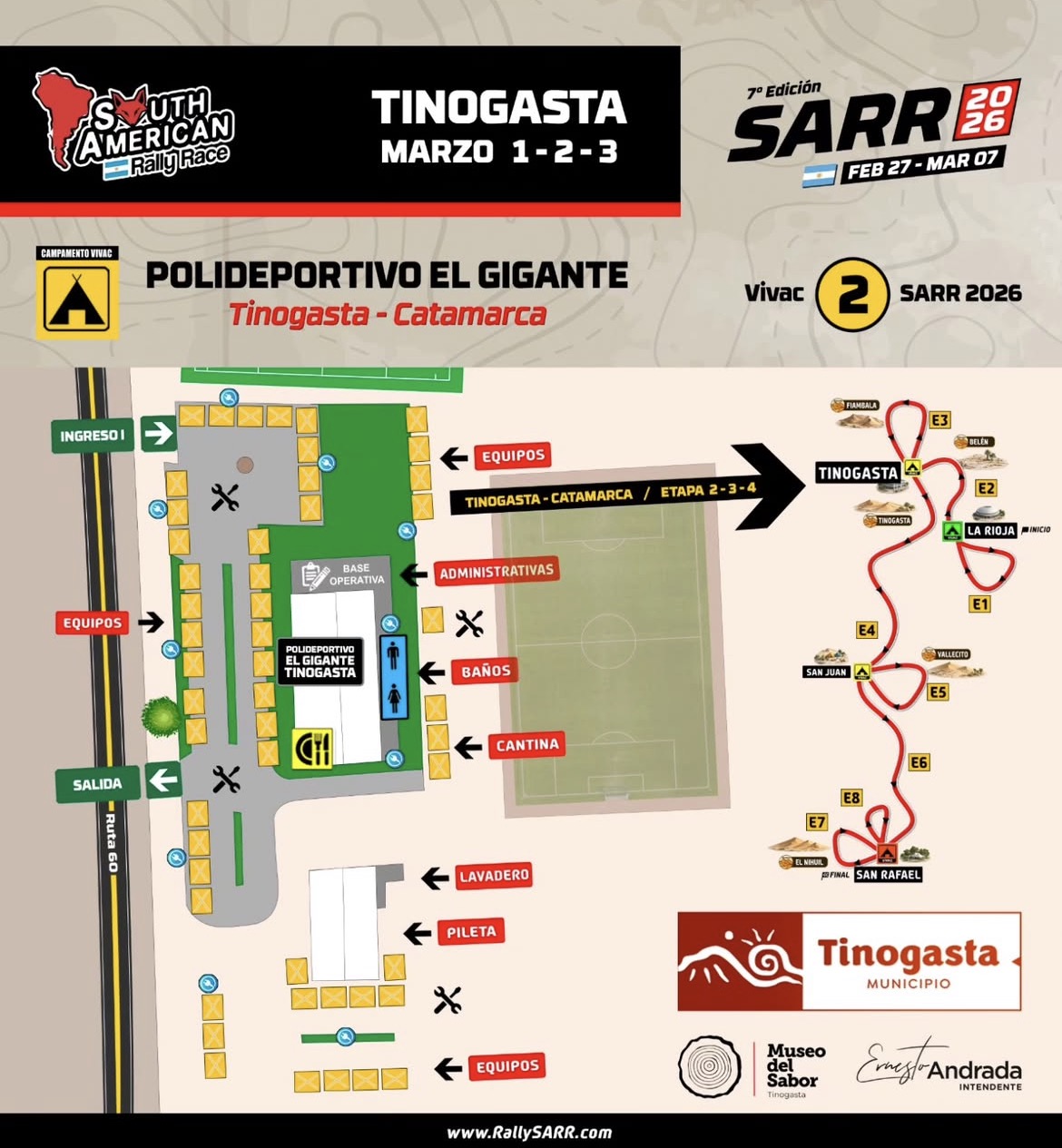 En este sentido, el South American Rally Race enfatiza y agradece efusivamente al Municipio de Tinogasta por haber facilitado el uso de dicho establecimiento, fundamental para el desarrollo organizativo y operativo de la competencia en territorio catamarqueño.