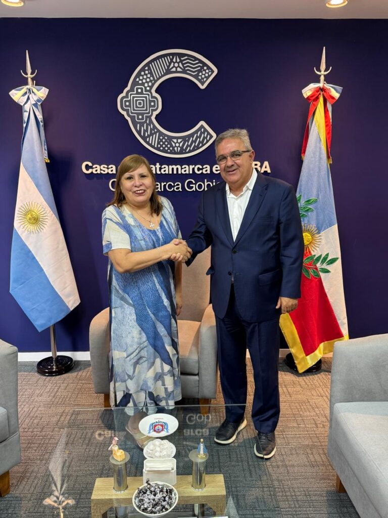 En Casa de Catamarca en Ciudad Autónoma de Buenos Aires, el gobernador Raúl Jalil mantuvo una reunión con María Celeste González, directora del medio especializado en minería.