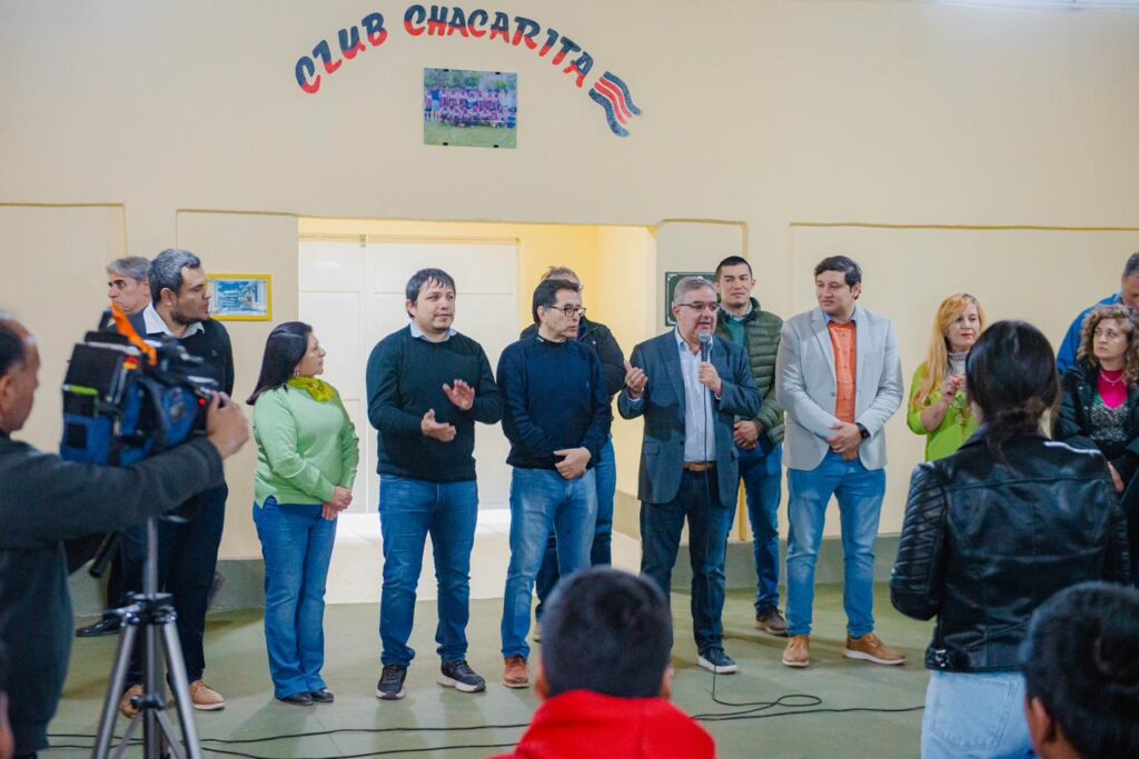 En otra de las actividades oficiales en Tinogasta, el gobernador Raúl Jalil inauguró en el Club Chacarita del distrito Banda de Lucero un nuevo salón de usos múltiples que lleva el nombre de “Leonel Adalberto Godoy”, quien fue jugador del club. El intendente Ernesto Andrada y el diputado nacional Sebastián Noblega acompañaron durante la inauguración.