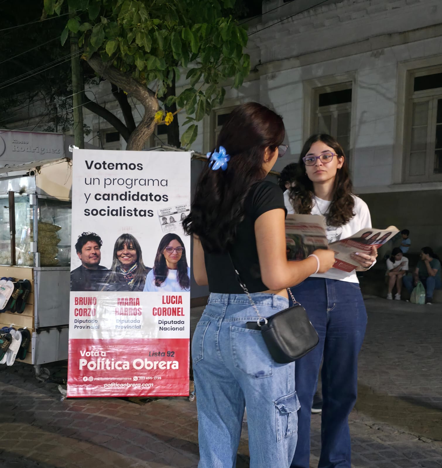 Política Obrera cerró campaña en Catamarca con un acto en peatonal Rivadavia, donde intervinieron sus principales candidatos: Lucía Coronel, becaria CONICET y docente – candidata a Diputada Nacional. Bruno Corzo, docente autoconvocado y candidato a diputado provincial; y María Barros, ex trabajadora de la textil Mom Sports y candidata a Diputada provincial.