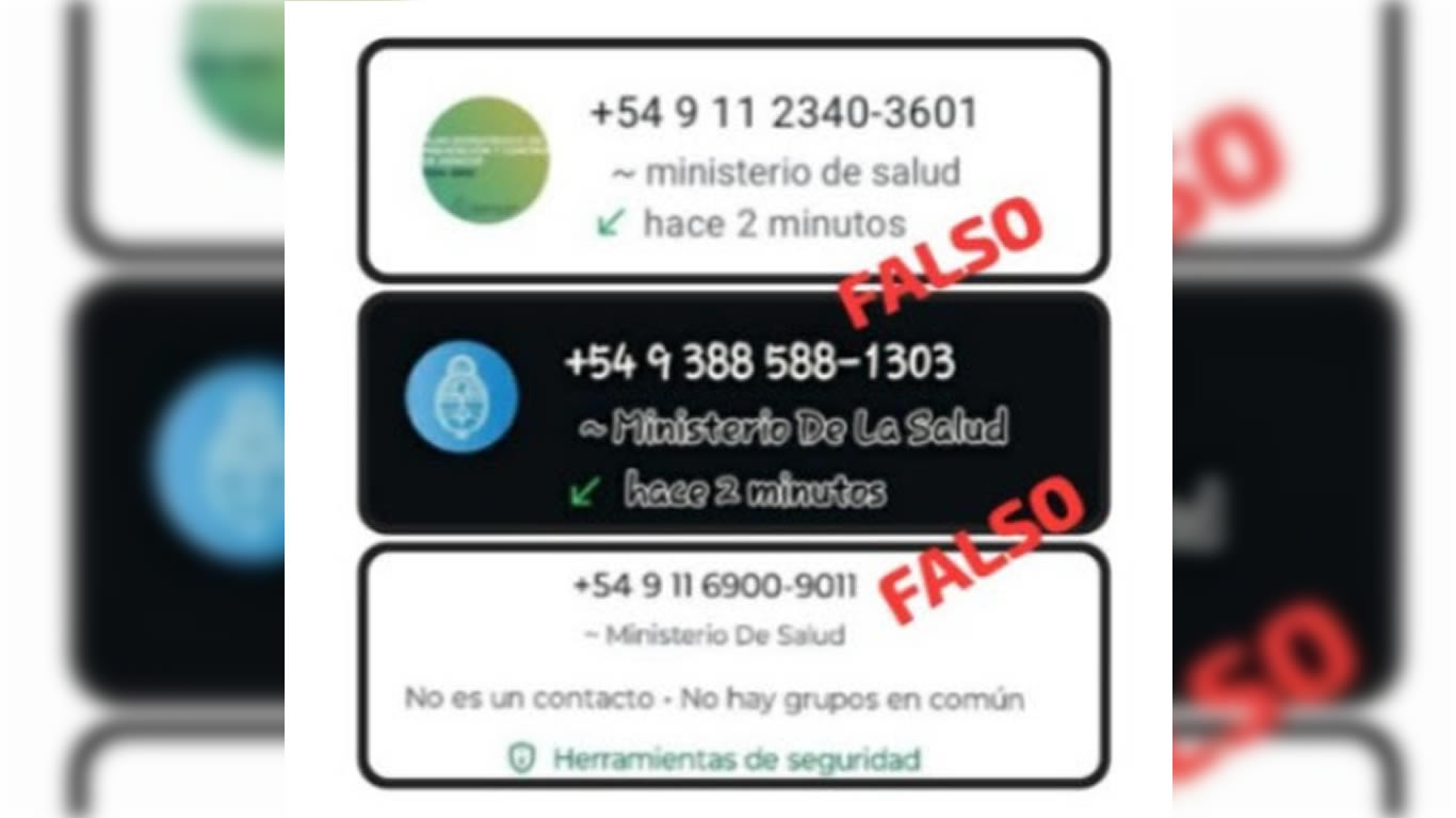 - Desconfíe de mensajes y llamadas provenientes de números desconocidos: No interactúe con usuarios del servicio de mensajería de WhatsApp que no estén autorizados/autenticados (Ministerio de Salud) en donde ofrezcan turnos de vacunación de las diferentes patologías como ser covid, dengue entre otros, no ingrese a los links brindados, no brinde ningún código.