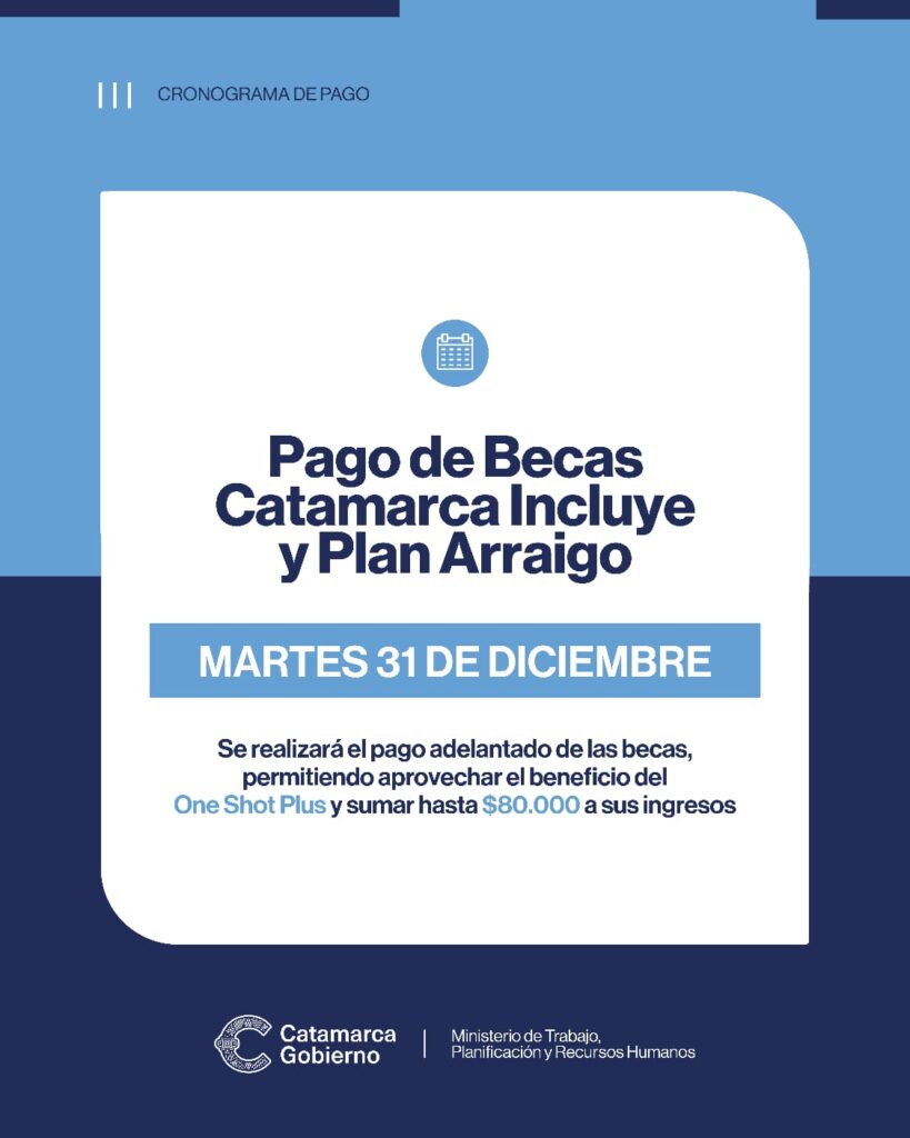 Cronograma de pago de becas «Catamarca Incluye» y «Plan Arraigo»