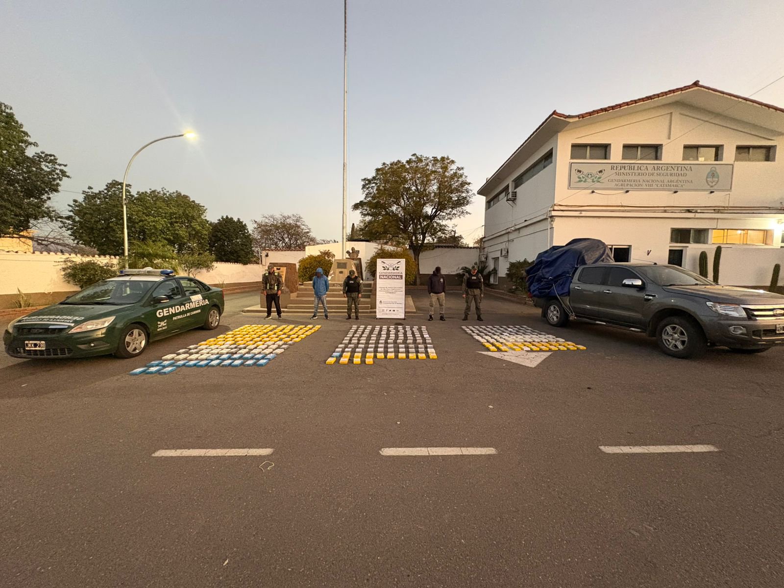 En medio de un allanamiento en el Departamento catamarqueño de Belén, los gendarmes usaron una herramienta y detectaron que dentro de los recipientes plásticos había un contenido macizo. Luego, cortaron con amoladoras y hallaron cajas metálicas que contenían un total de 297 paquetes rectangulares con la droga.