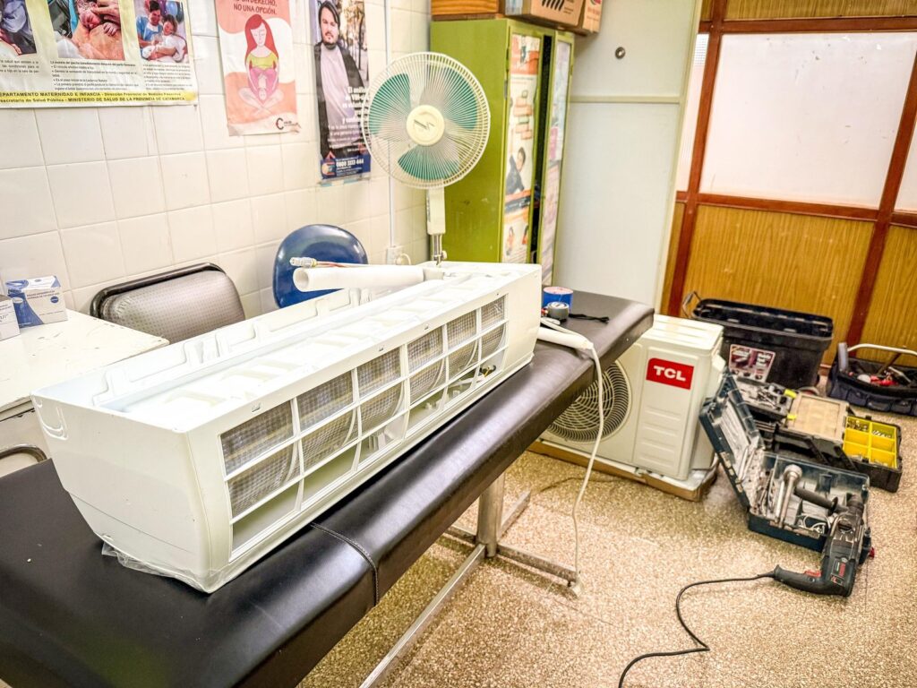 El municipio de Tinogasta continúa invirtiendo en mejoras para el sistema de salud local. En esta oportunidad, se realiza la instalación de 10 equipos de aire acondicionado frío-calor en las salas de internación del Hospital Zonal San Juan Bautista, con una inversión superior a los 10 millones de pesos.