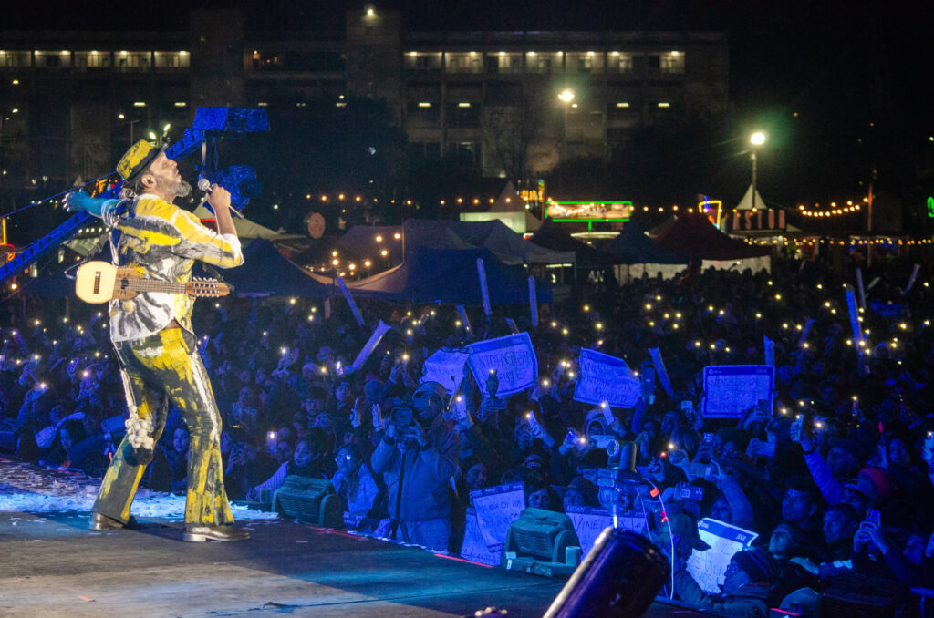 A pesar del frío de la tarde, la energía contagiosa del grupo transformó el ambiente en una verdadera fiesta popular, donde el público no dejó de bailar y celebrar. Entre sikus, zampoñas, charangos y bombos, la banda jujeña desplegó un repertorio impresionante que recorrió sus más de 30 años de trayectoria, con fusiones que combinan folklore andino, rock, tango y bossa nova, sin perder su raíz profundamente norteña.