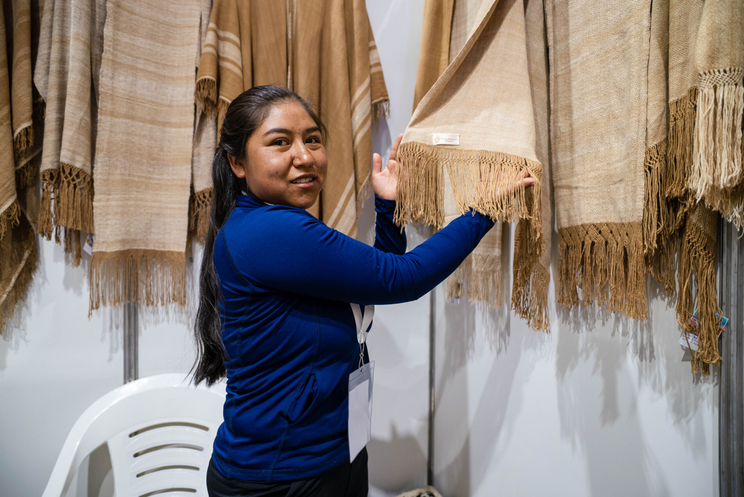 “Desde que hacemos el chaku hay más fibra, otros tejedores más grandes no han tenido la dicha que tengo de poder tejer con lana de vicuña, antes tejíamos con lana de llama y oveja. Mi mamá nos enseñó y le agradezco, a los cinco, seis años con mis hermanos ayudábamos a mismir (torcer la lana para los peleros) y después de más grandes aprendimos con el telar criollo con lana de llama y saber eso nos facilitó aprender con lana de vicuña”, contó.