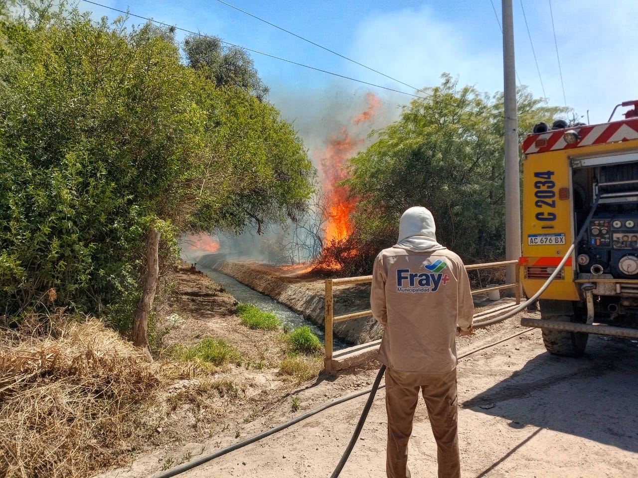 El incendio se originó alrededor de las 13 hs en una zona de pastizal cercana a viviendas, y por fortuna fue controlado debido al rápido accionar de personal de Bomberos Voluntarios de Valle Viejo y de Fray Mamerto Esquiú junto a la Brigada de Lucha contra Incendios Forestales, quienes contaron con la valiosa colaboración de civiles que pertenecen al municipio y brindaron asistencia directa hasta que se lograron controlar las llamas.