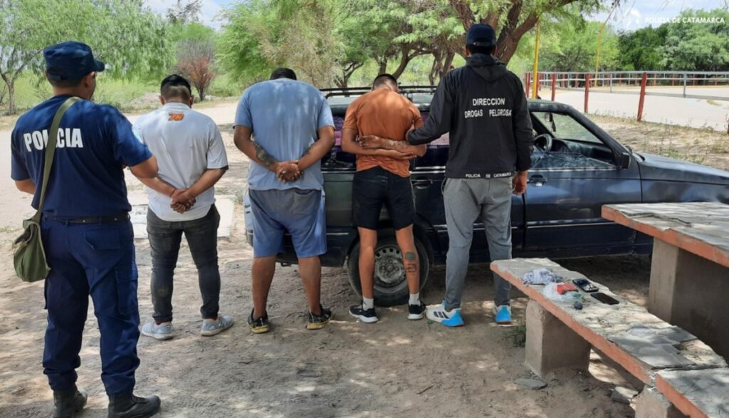 Ayer, a las 12:30, tras una ardua tarea investigativa y bajo las directivas del Juzgado Federal, a cargo del Dr. Miguel Ángel Contreras, efectivos del Grupo Antinarcóticos de Unidades Regionales (GAUR-Belén) y de la Comisaría Departamental llegaron hasta un centro deportivo ubicado en esa Ciudad del Departamento homónimo, donde controlaron un automóvil Fiat Duna Weekend, de color gris, en el que circulaban tres masculinos de 23, 25 y 28 años de edad, oriundos de la Provincia de La Rioja.