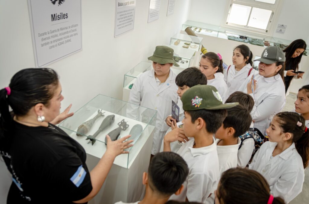De la visita participaron estudiantes del nivel primario, quienes recorrieron la muestra y conocieron de cerca parte de la historia vinculada al conflicto bélico del Atlántico Sur.