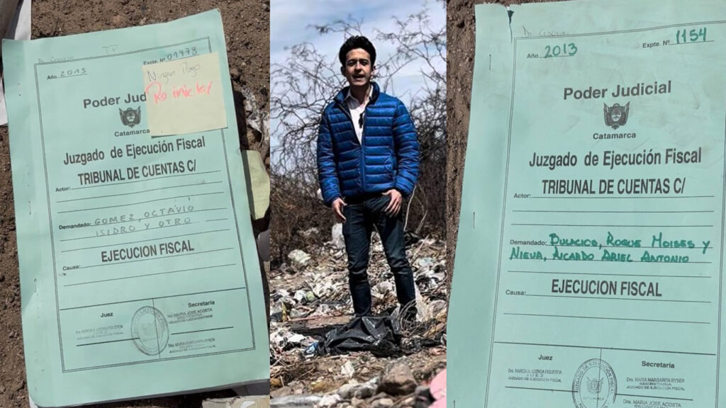 Un hecho tan insólito como alarmante sacudió el fin de semana a la capital catamarqueña: expedientes judiciales vinculados al Tribunal de Cuentas aparecieron tirados en un basural detrás del estadio de fútbol. La situación fue denunciada públicamente por Máximo Pastrana, candidato a concejal por el Partido Demócrata, quien presentó la exposición correspondiente en la Unidad Judicial N°4, aunque hasta el momento asegura no haber recibido respuestas de las autoridades.