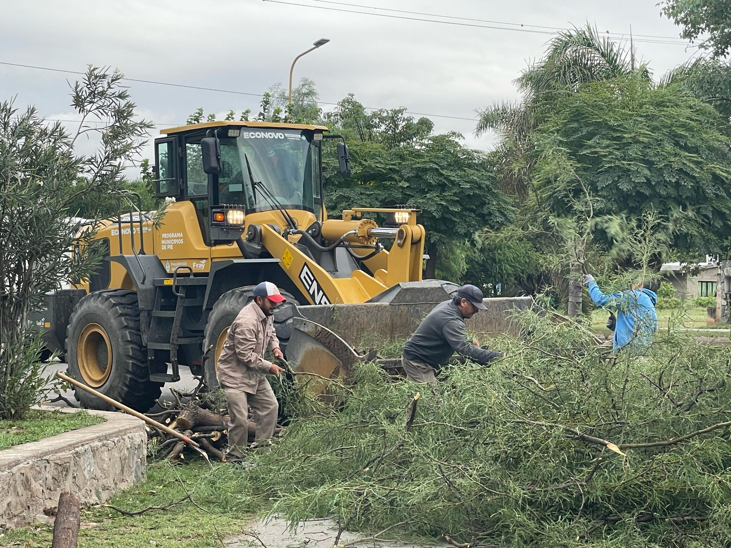 Personal de todas las delegaciones municipales, en una tarea conjunta entre la Dirección de Espacios Públicos, Infraestructura Eléctrica y secretaria de Obras y Servicios Públicos llevaron adelante un operativo en simultáneo en todas las localidades para despejar calles, plazas y hasta viviendas que fueron afectadas.