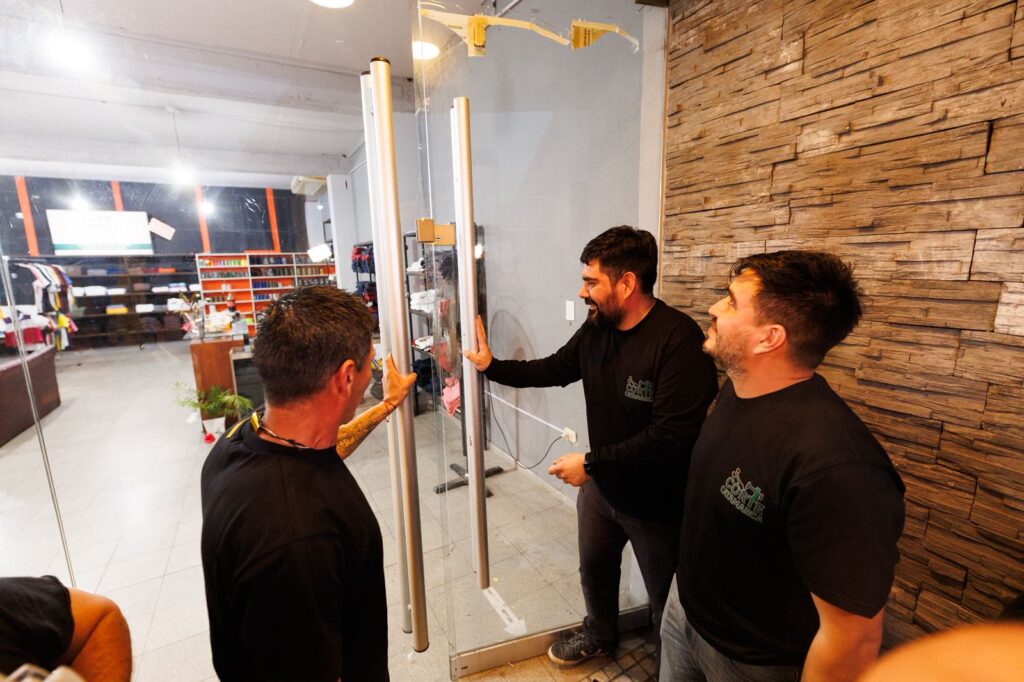 Durante un breve y emotivo acto, Luis Guzmán, uno de los propietarios, compartió con entusiasmo los inicios del proyecto: «Es un emprendimiento que creamos con un hermano y un amigo, donde fabricamos ropa, ropa textil, y bueno, empezamos desde cero, compramos la tela, la traemos, la cortamos, la confeccionamos, la estampamos, la vendemos por mayor y por menor».