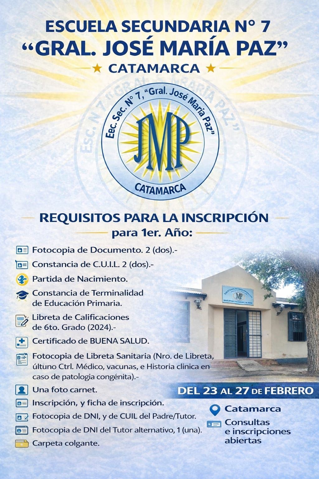 La Escuela Secundaria N° 7 “José M. Paz”, dio a conocer la propuesta educativa de la institución de cara al ciclo lectivo 2026, con el objetivo de informar a la comunidad sobre las orientaciones y oportunidades formativas disponibles en el nivel secundario.