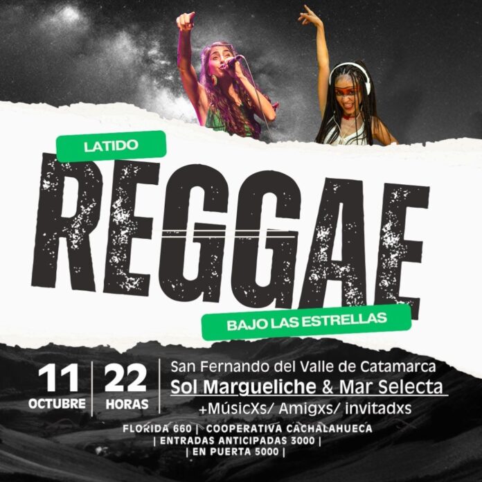 El próximo sábado 11 de octubre a las 22 horas, la Cooperativa Cachalahueca (Florida 660, Catamarca) se convertirá en escenario de una experiencia única: Latido Reggae bajo las estrellas, una propuesta que combina música en vivo, comunidad y la energía del cielo nocturno del valle.