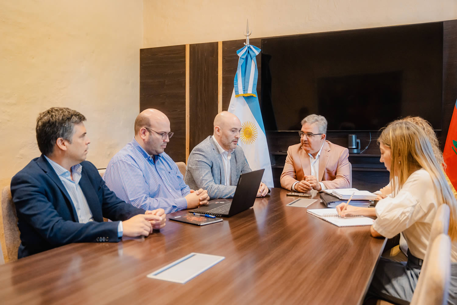 Del encuentro con el mandatario provincial también participaron la ministra de Trabajo, Planificación y Recursos Humanos, Verónica Soria; el asesor general de Gobierno, Nicolás Rosales; y la secretaria de Estado de Gabinete, Luz Soria.