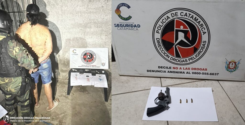 Tras irrumpir en los inmuebles, los investigadores secuestraron siete (07) envoltorios que contenían Marihuana y Cocaína, dos (02) teléfonos celulares y un (01) revólver calibre 22., con tres cartuchos del mismo calibre.
