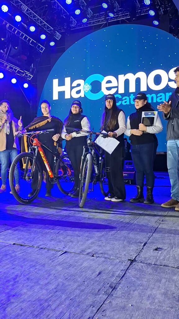 María del Pilar Olmos y Florencia Solange Rearte fueron las felices ganadoras del sorteo de dos bicicletas, que realizó la Secretaría de Modernización del Ministerio de Hacienda y Obra Pública para promocionar la aplicación Mi Catamarca. Las ganadoras llegaron al Predio Ferial a pie, escanearon el código QR para visualizar un video informativo, estuvieron presentes en el momento del sorteo y se retiraron en bicicleta muy agradecidas con los organizadores.