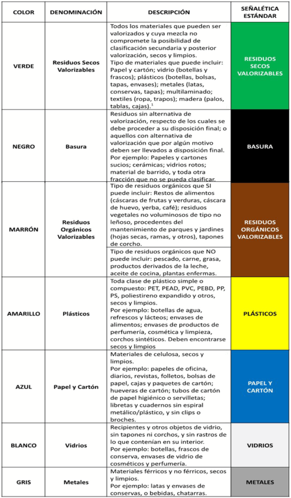 El código de colores adoptado por los municipios no es una iniciativa aislada, sino que se encuentra establecido en el decreto reglamentario de la Ley Nacional de Presupuestos Mínimos de Residuos Domiciliarios N° 25.916. Esta unificación permitirá al ciudadano que se moviliza entre municipios mantener los mismos hábitos de separación, entendiendo fácilmente dónde depositar los residuos secos valorizables (como papel, cartón, plástico y metales) y los residuos orgánicos valorizables.