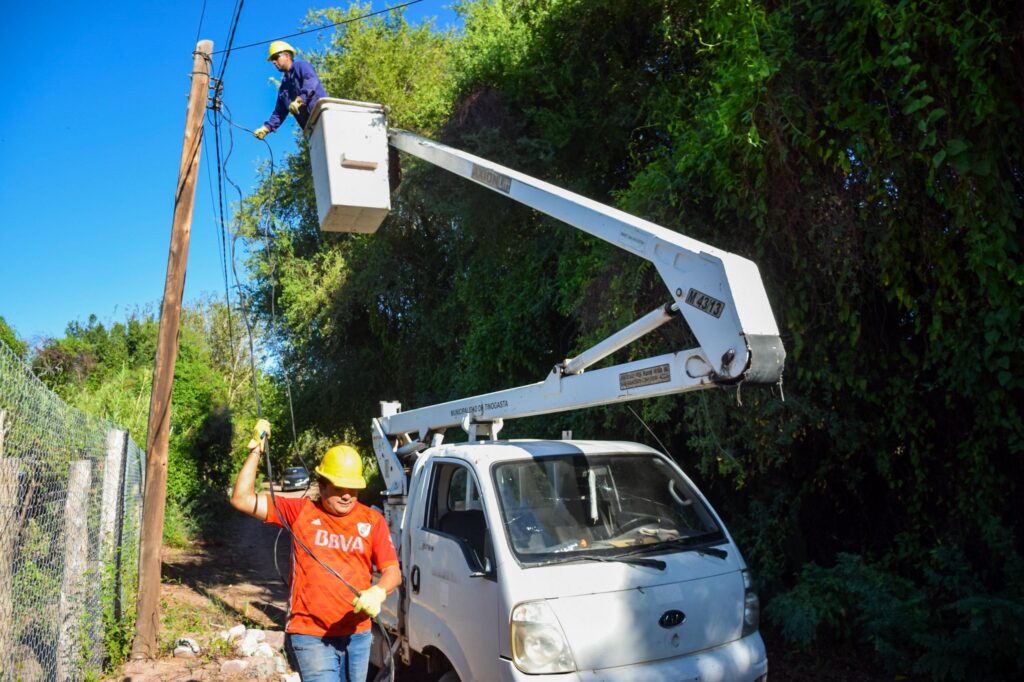 El municipio de Tinogasta, a través de la Secretaría de Servicios Públicos y el área de Infraestructura Eléctrica, avanza con el plan de modernización del alumbrado público en toda la jurisdicción. En esta oportunidad, se lleva adelante la colocación de 700 metros de cable preensamblado en el barrio Los Guaytimas, una obra clave para optimizar el servicio energético y mejorar la seguridad de los vecinos.