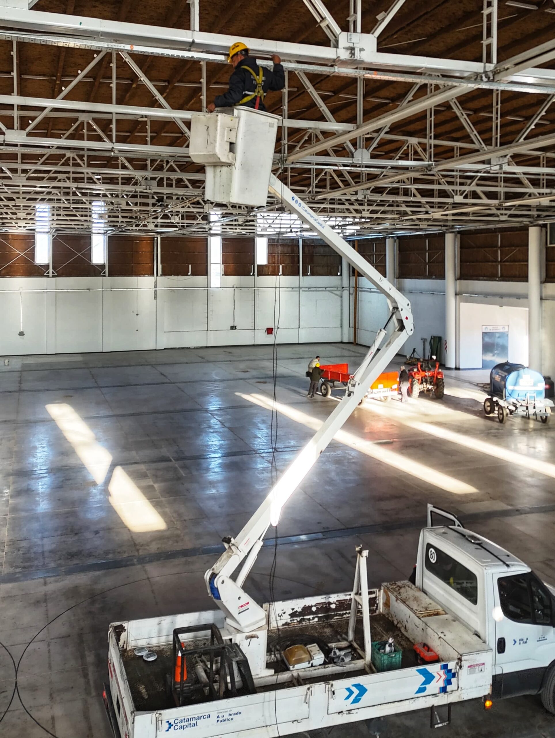 Un equipo de trabajo de la Secretaría de Modernización perteneciente al Ministerio de Hacienda y Obra Pública trabaja en el refuerzo de los sistemas de conectividad para los distintos pabellones del Predio Ferial Catamarca, que se prepara para albergar la Fiesta Nacional e Internacional del Poncho en el mes de julio.