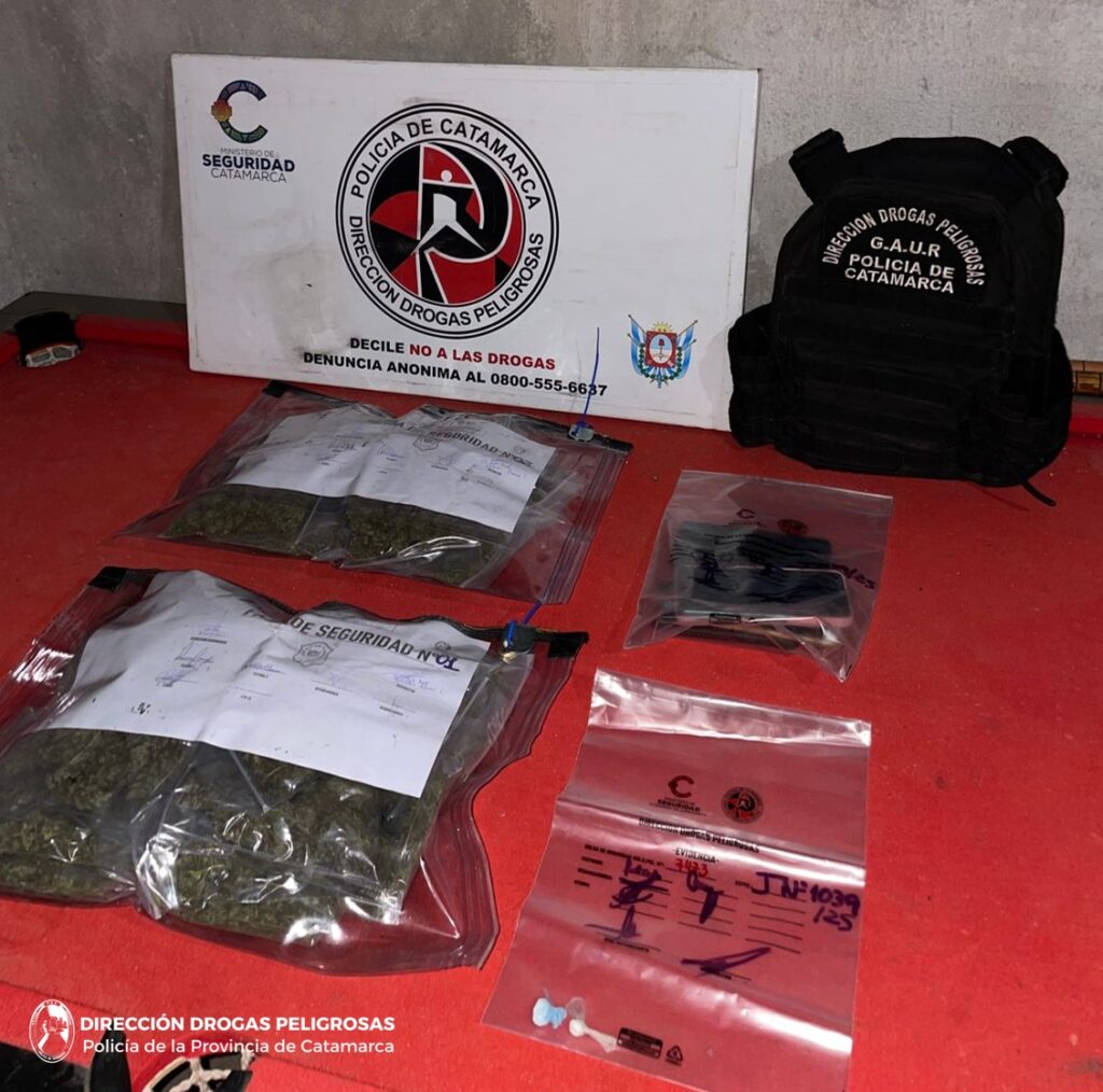 En el marco de tareas investigativas por supuestas infracciones a la Ley Nacional de Estupefacientes N° 23.737, con conocimiento e intervención del Juzgado Federal de Catamarca, personal del Grupo Antinarcóticos de Unidades Regionales (GAUR-Tinogasta), perteneciente a la Dirección Drogas Peligrosas de la Policía de la Provincia, materializó allanamientos en domicilios de la Ciudad de Tinogasta, Dpto. Homónimo.