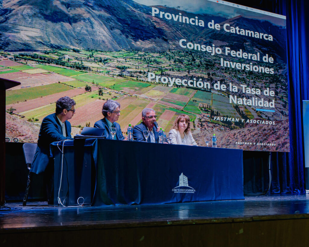 La presentación del “Estudio sobre la Tasa de Natalidad. Proyecciones a 20 años en la Provincia de Catamarca” se realizó en el Cine Teatro Catamarca y estuvo encabezada por el gobernador Raúl Jalil y la ministra de Trabajo, Planificación y Recursos Humanos, Verónica Soria. La disertación estuvo a cargo de los actuarios Bernardo Alberto Fastman y Alejandro Nava, quienes fueron los encargados de elaborar el informe.