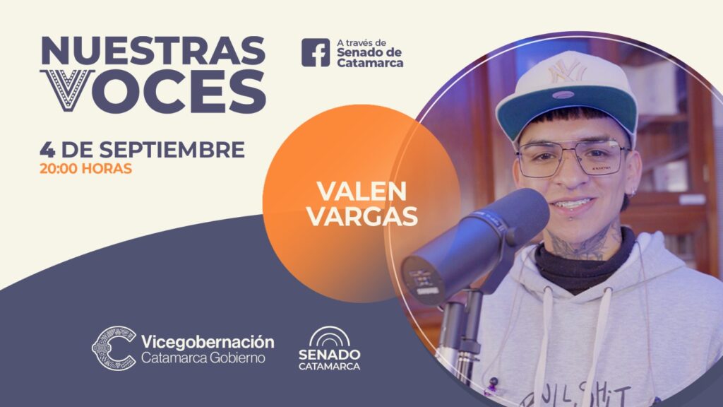 El nuevo episodio de Nuestras Voces, que se presentará este miércoles 4 de septiembre a las 20 horas en la fanpage de Facebook de Senado, tiene el gusto de recibir al artista e influencer Valentín Vargas, quien se encuentra expandiendo su canto y su música por todo el país, con una reciente colaboración junto al artista popular uruguayo Fer Vázquez.