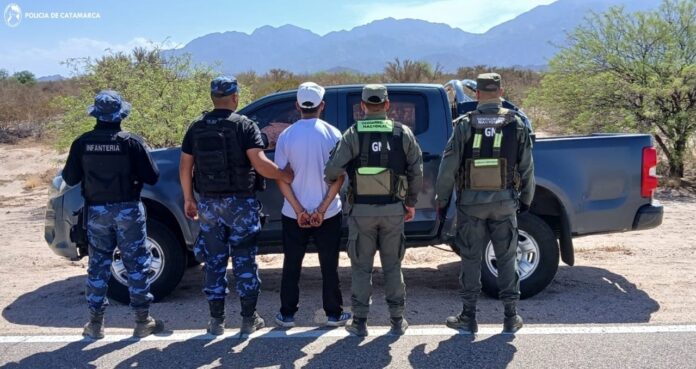 De manera simultánea, personal de la Subcomisaría Salado, en conjunto con efectivos de Gendarmería Nacional apostados en el Puesto Caminero de Cerro Negro (Tinogasta), logró la aprehensión de un joven de 23 años, de apellido Gutiérrez, quien sería el presunto autor del ilícito. Según se informó, el sujeto habría llegado al lugar a bordo de otro vehículo, al que subió tras hacer dedo en la ruta.
