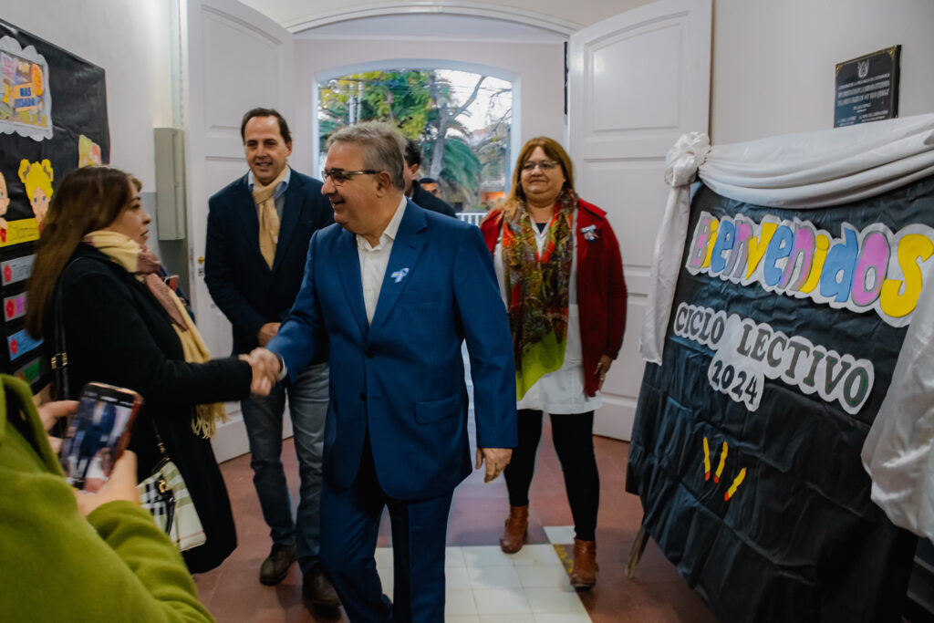 En otra actividad, el Gobernador junto al ministro de Educación, Dalmacio Mera, visitaron el Jardín de Infantes (J.I.N.) del Loteo Parque Sur, donde se llevó a cabo el acto de inauguración de actividades 2024, luego de una serie requerimientos administrativos para optimizar su funcionamiento.