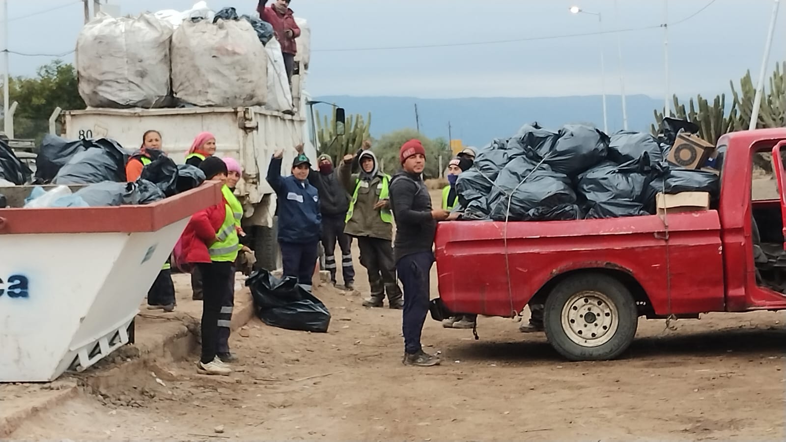 Quince recicladores de la cooperativa Los Caminantes, en conjunto con la administración de la Planta de Residuos Sólidos Urbanos de la provincia vienen realizando, cada madrugada, una tarea enorme: separar la basura que se genera en el marco de la 53º Fiesta Nacional e Internacional del Poncho, y recuperar lo que se puede reciclar.