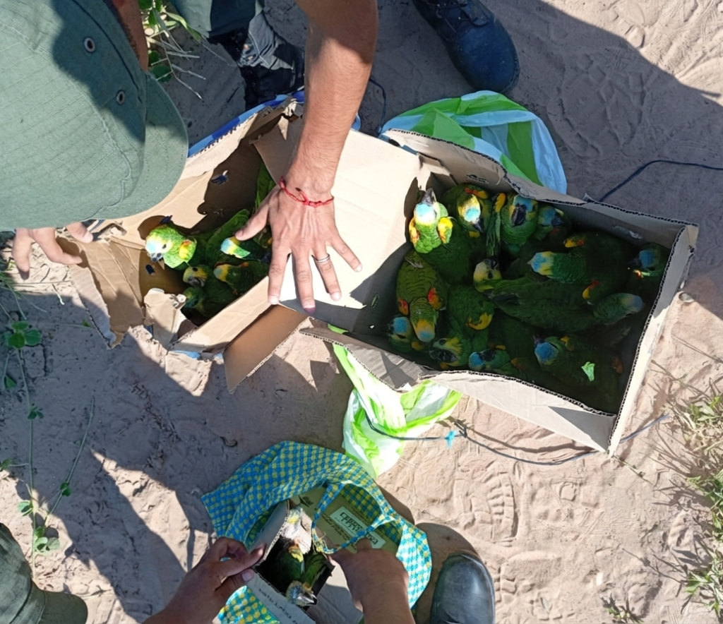 Inmediatamente, los gendarmes se acercaron y detectaron que ocultaban 25 ejemplares de loros de la especie Amazona aestiva (habladores) dentro de tres cajas.