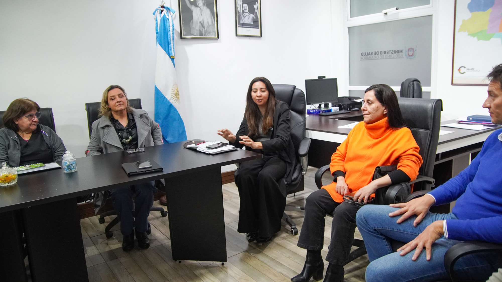 La Ministra de Salud de la provincia, Johana Carrizo recibió a la Secretaria Ejecutiva del Órgano de Revisión de Salud Mental y Adicciones; Anahí Costa; estuvieron presentes también la Secretaria de Asistencia en Salud Pública, Silvia Barrientos; la Secretaria de Salud Mental y Consumos Problemáticos, Florencia Acosta con su equipo y el Director del Hospital San Juan Bautista, Martín Pichetto.