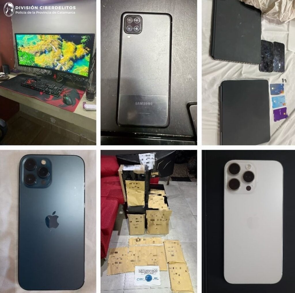 En dicho lugar, los policías incautaron tres (03) teléfonos celulares; dos de ellos marca iPhone y el restante Samsung, un (01) monitor, un (01) disco rígido de 500 GB, un (01) gabinete IC3, un (01) troquel, tres (03) tarjetas de crédito y débito, dos (02) tarjetas SIM, dos (02) Ipad marca Apple, dos (02) microSD, tres (03) tarjetas Prex, modem Huawei, y DVR Hikvision.