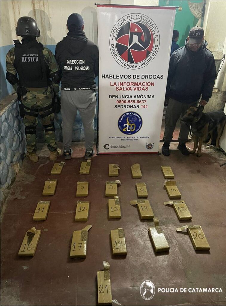 Luego de una ardua tarea investigativa, efectivos de la Dirección Drogas Peligrosas de la Policía de la Provincia, conjuntamente con sus pares de la Dirección de Operaciones Especiales “Kuntur”, materializaron un allanamiento en un domicilio de la esta Ciudad Capital, dispuesto por el Juzgado Federal, a cargo del Dr. Miguel Ángel Contreras, Secretaría Penal, a cargo del Dr. Raúl Enrique Córdoba.