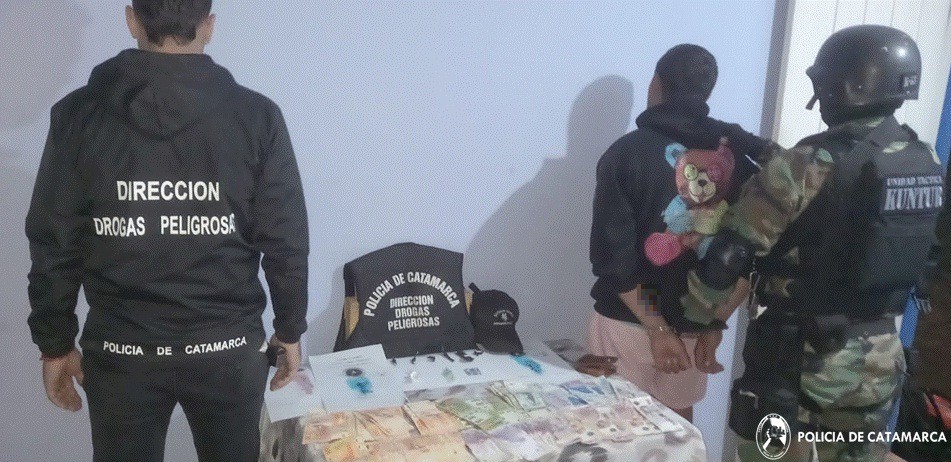 Al irrumpir en el inmueble y bajo las directivas del Juzgado Federal, a cargo del Dr. Miguel Ángel Contreras, Secretaría Penal a cargo del Dr. Luis Alberto Baracat Marenco, los investigadores encontraron varios envoltorios de plástico con sustancias tipo polvo de color blanco y herbácea, que al ser sometidos a la prueba de campo correspondiente, arrojó como resultado que se tratarían de Cocaína y Marihuana respectivamente, que quedaron en calidad de secuestro, al igual que varios ansiolíticos y la suma de noventa mil quinientos pesos ($90.500) en efectivo.
