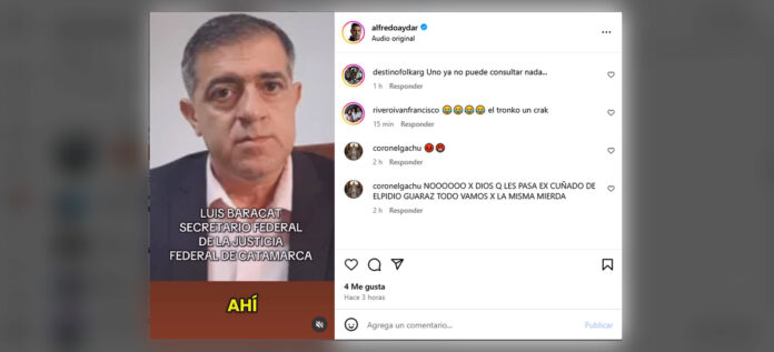Un nuevo capítulo sacude a la Justicia Federal de Catamarca. El abogado querellante Alfredo Aydar difundió en sus redes sociales un video con un audio que, podría pertenecer al secretario del Juzgado Federal, Luis Baracat, y que tendría como interlocutor nada menos que José Blas, una de las figuras cercanas al líder del grupo financiero Adhemar Capital, Edgar Adhemar Bacchiani.